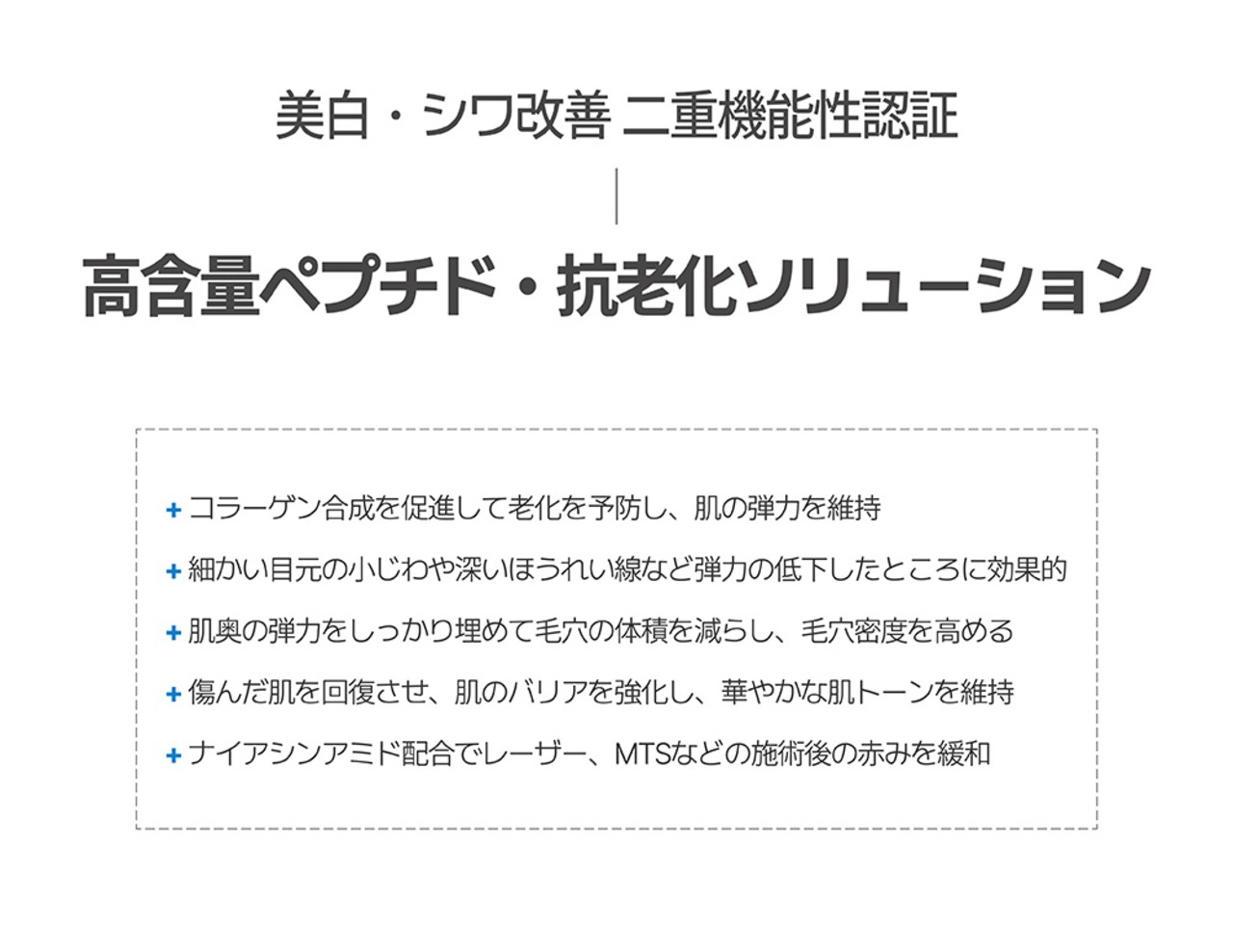 ツボクサエキス(CICA)とEGFによって肌の再生に効果があり皮膜剤によって長くしっとり感を維持させる高濃度セラムです。